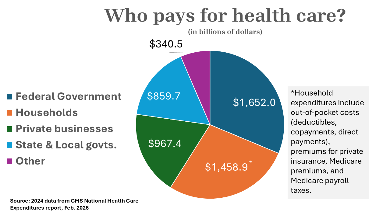 But those Democrats have never developed the tax reform program that would be necessary to implement M4A, at least not one that is capable of unifying the party and winning majority support in Congress. American businesses through private insurance paid for 18% of all health care expenditures in 2024, according to the actuaries at CMS. Householders, through co-premiums, deductibles, co-pays, direct payments, Medicare Part B premiums and Medicare payroll taxes, pay for a whopping 28%. Relieving businesses of their direct payments and individuals of “most out-of-pocket costs” would require raising somewhere between $1.5 and $2 trillion a year in new revenue. That’s three to four times the amount collected in corporate income taxes in 2024; it’s 75% to 80% of individual income tax collections.